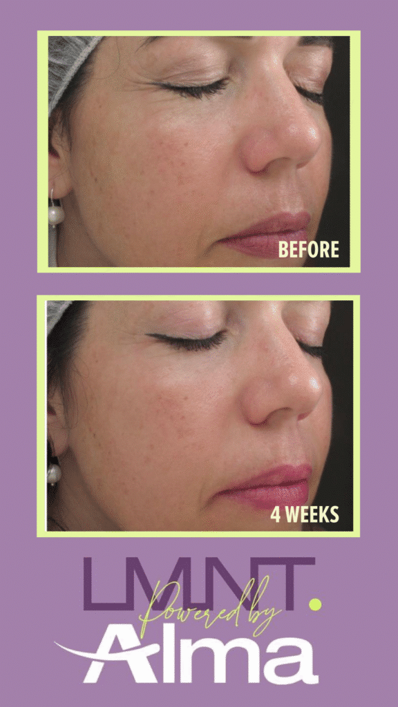 Each treatment from LMNT one delivers controlled light energy in both infrared and red light. The light supports your skin’s natural renewal process without heat damage or irritation. The result is a radiant, youthful glow that reflects your overall skin health.